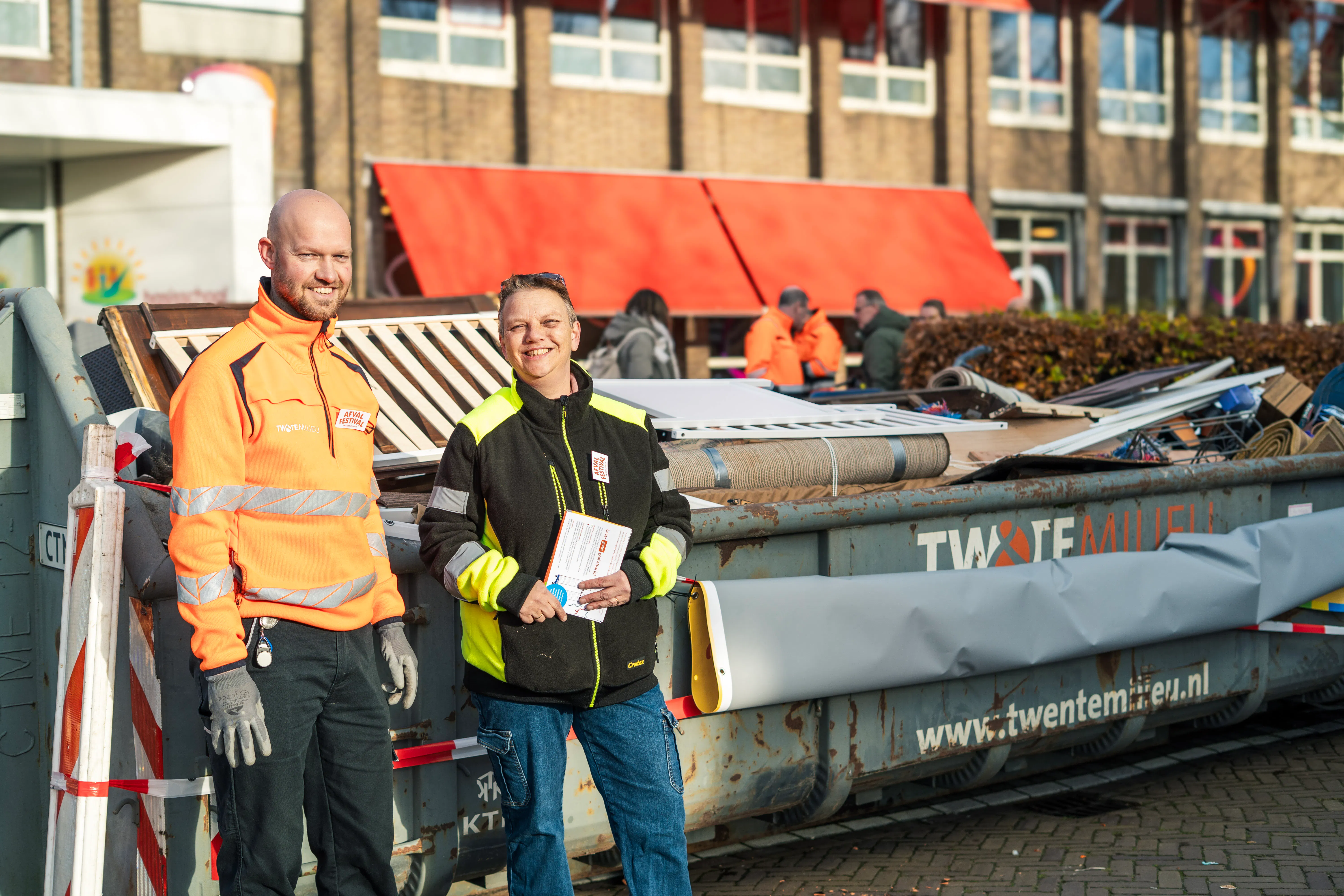 Vanuit Twente Milieu waren er een heel aantal collega’s betrokken. Iedere dag stonden er meerdere collega’s bij de grote containers om het afval aan te nemen, stond er een collega paraat om de containers te legen en konden kinderen het afvalspel bij ons spelen. En inwoners die moeilijk zelf het afval konden wegbrengen, hielpen we graag door het afval op te halen met de bakfiets.